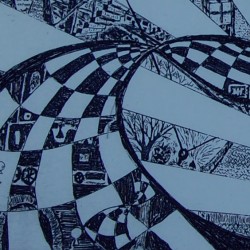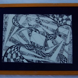 In der Serie “Anfangs” zeige ich diese ersten Werke, wo ich noch stark mit der Technik beschäftigt war. Grafische Motive verband ich thematisch mit Kinderzeichnungen.