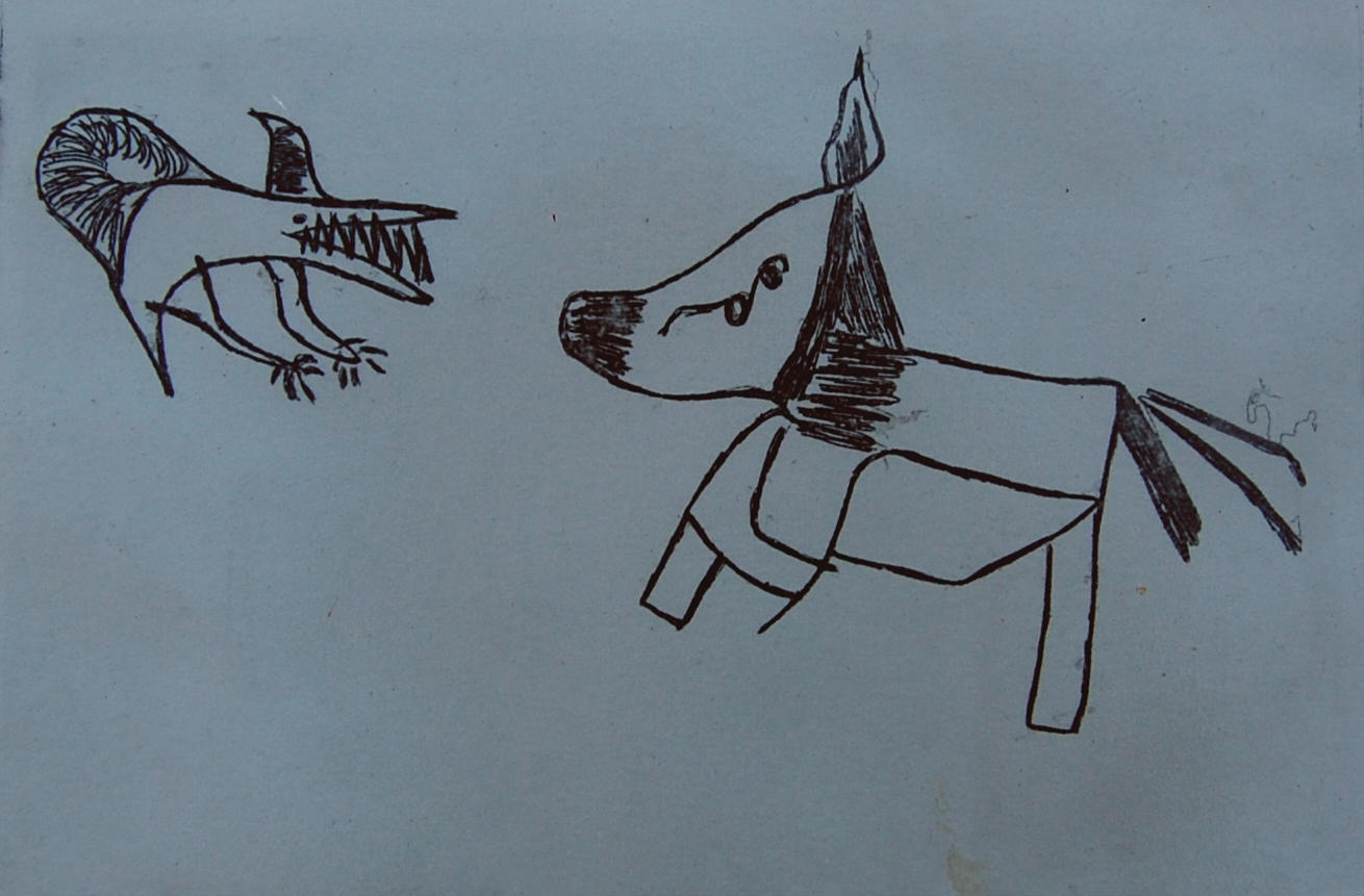 Mein Sohn Sjoerd war als Kind ein begeisterter Zeichner. Einige seiner Zeichnungen (oder Teile davon) waren dermassen ausgewogen und schön, dass ich sie in Radierungen übersetzte.