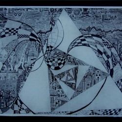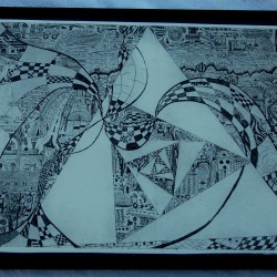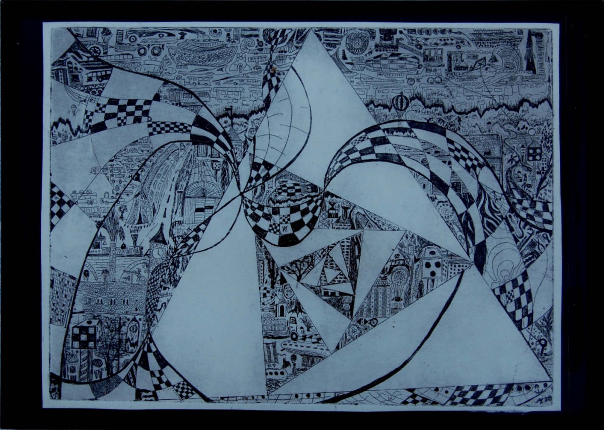 In “het prille begin” laat ik mijn allereerste etsen zien waar ik motieven van kindertekeningen met grafische motieven combineer.